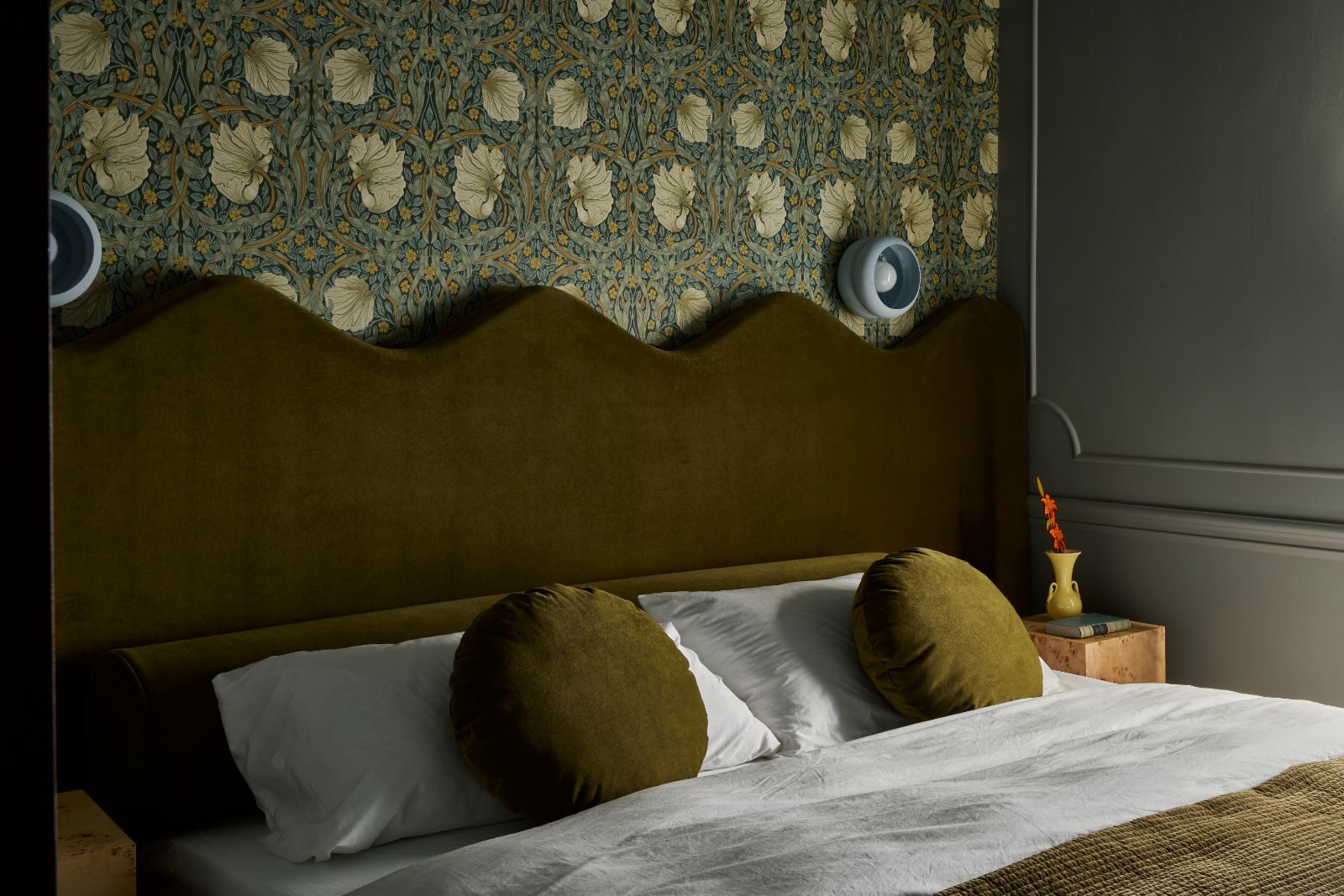• Custom designed headboards by Stay Here x Kara Schuster.
